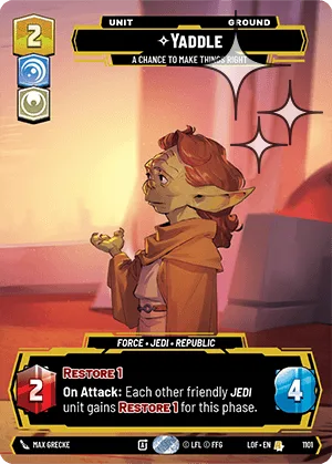 On Attack: Each other friendly Jedi unit gains Restore 1 for this phase.