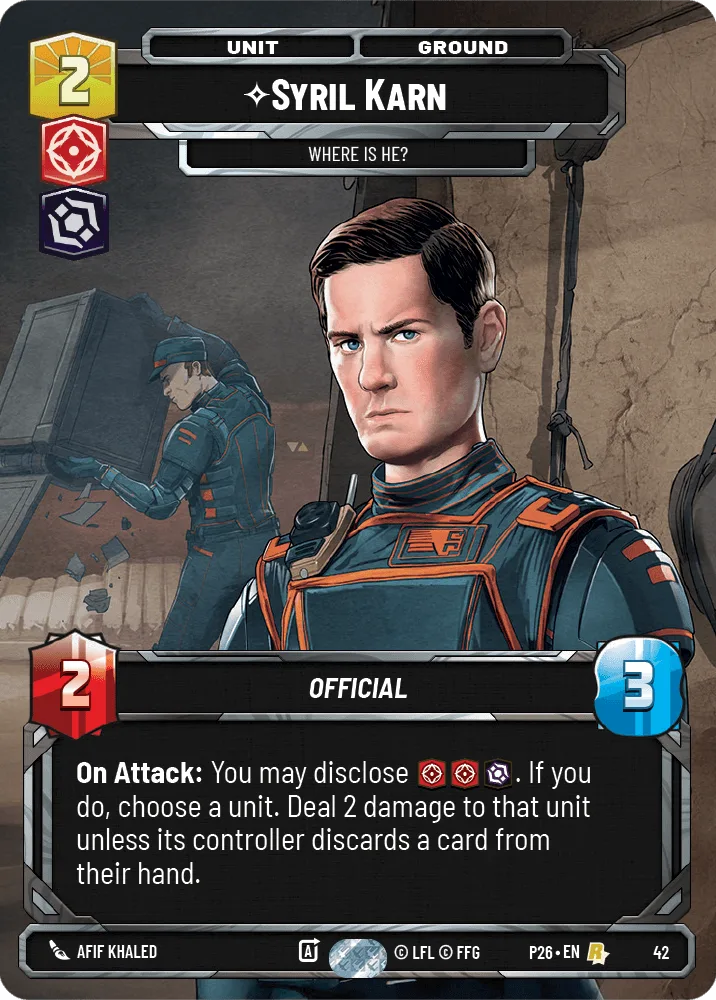 . If you do, choose a unit. Deal 2 damage to that unit unless its controller discards a card from their hand.