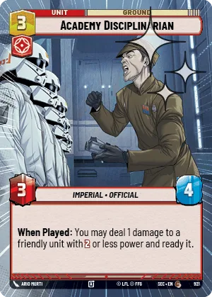 When Played: You may deal 1 damage to a friendly unit with 2 or less power and ready it.