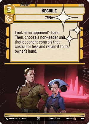 Look at an opponent's hand. Then, choose a non-leader unit that opponent controls that costs 6 or less and return it to its owner's hand.
