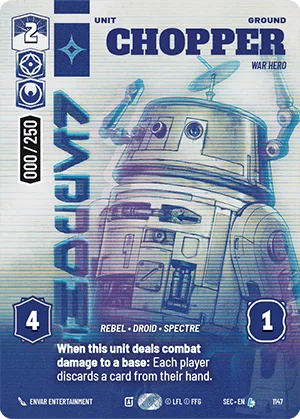 When this unit deals combat damage to a base: Each player discards a card from their hand.
