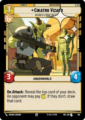 On Attack: Reveal the top card of your deck. An opponent may pay