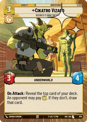On Attack: Reveal the top card of your deck. An opponent may pay