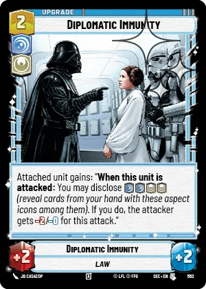 Attached unit gains: “When this unit is attacked: You may disclose ![]()