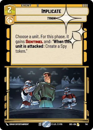 Choose a unit. For this phase, it gains Sentinel and: “When this unit is attacked: Create a Spy token.”