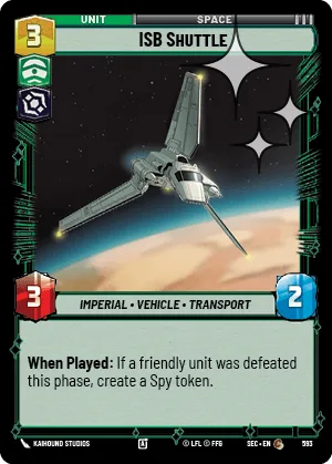 When Played: If a friendly unit was defeated this phase, create a Spy token.