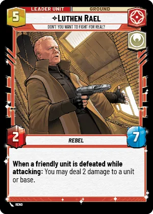 When a friendly unit is defeated while attacking: You may exhaust this leader. If you do, deal 1 damage to a unit or base.