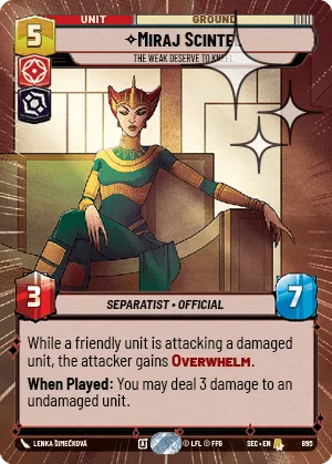While a friendly unit is attacking a damaged unit, the attacker gains Overwhelm.