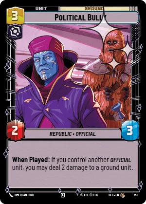 When Played: If you control another Official unit, you may deal 2 damage to a ground unit.