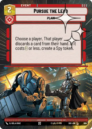 Choose a player. That player discards a card from their hand. If it costs 3 or less, create a Spy token.