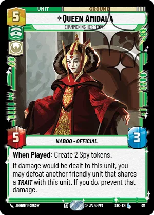 If damage would be dealt to this unit, you may defeat another friendly unit that shares a trait with this unit. If you do, prevent that damage.