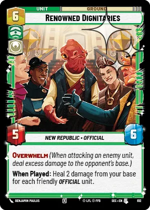 When Played: Heal 2 damage from your base for each friendly Official unit.