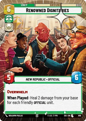 When Played: Heal 2 damage from your base for each friendly Official unit.