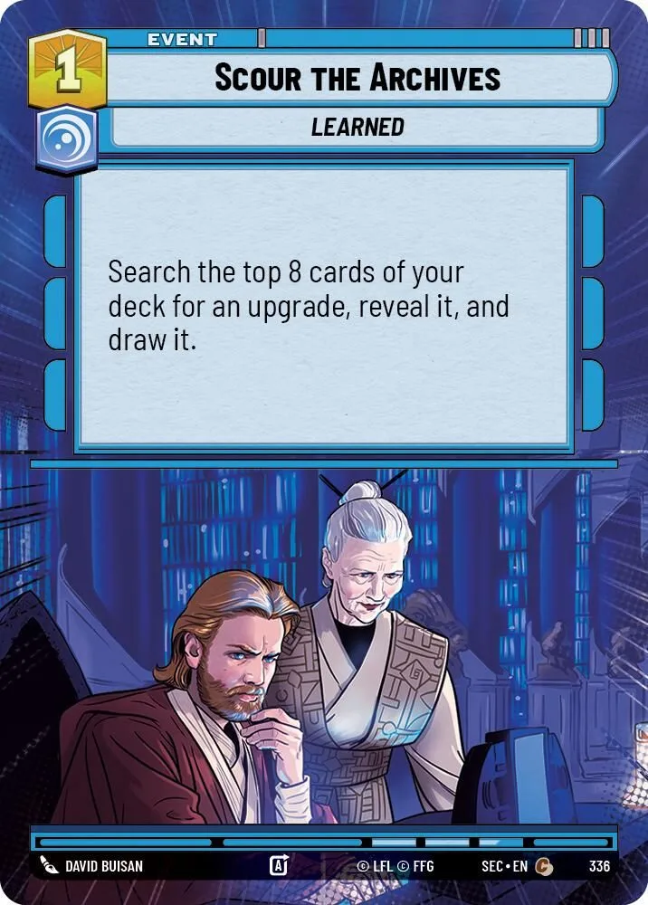 Search the top 8 cards of your deck for an upgrade, reveal it, and draw it.