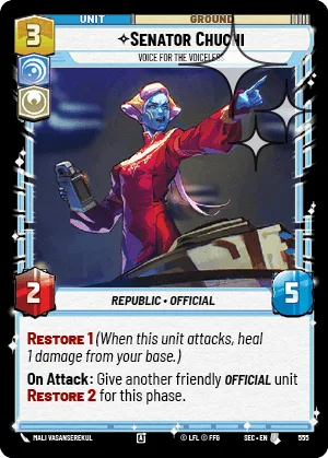 Restore 1 (When this unit attacks, heal 1 damage from your base.)