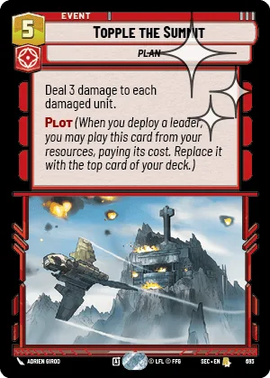Plot (When you deploy a leader, you may play this card from your resources, paying its cost. Replace it with the top card of your deck.)