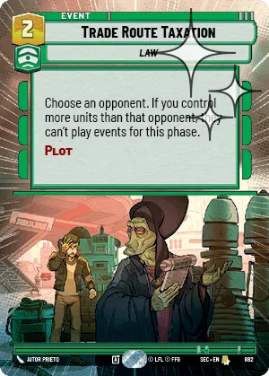 Choose an opponent. If you control more units than that opponent, they can't play events for this phase.