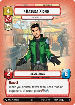 While you control fewer resources than an opponent, this unit gets +2/+0.
