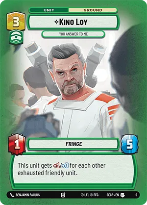 This unit gets +1/+0 for each other exhausted friendly unit.
