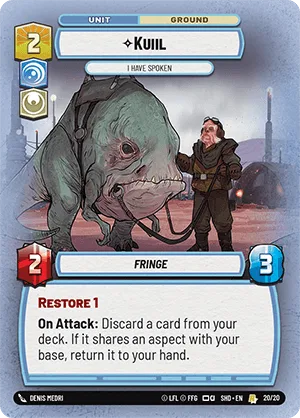 On Attack: Discard a card from your deck. If it shares an aspect with your base, return it to your hand."
