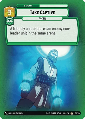 A friendly unit captures an enemy non-leader unit in the same arena. (Put the captured card facedown under that unit until that unit leaves play.)