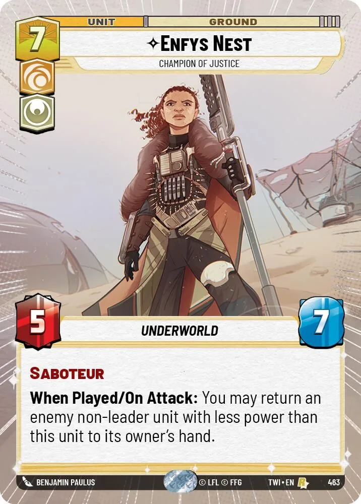 When Played/On Attack: You may return an enemy non-leader unit with less power than this unit to its owner’s hand.