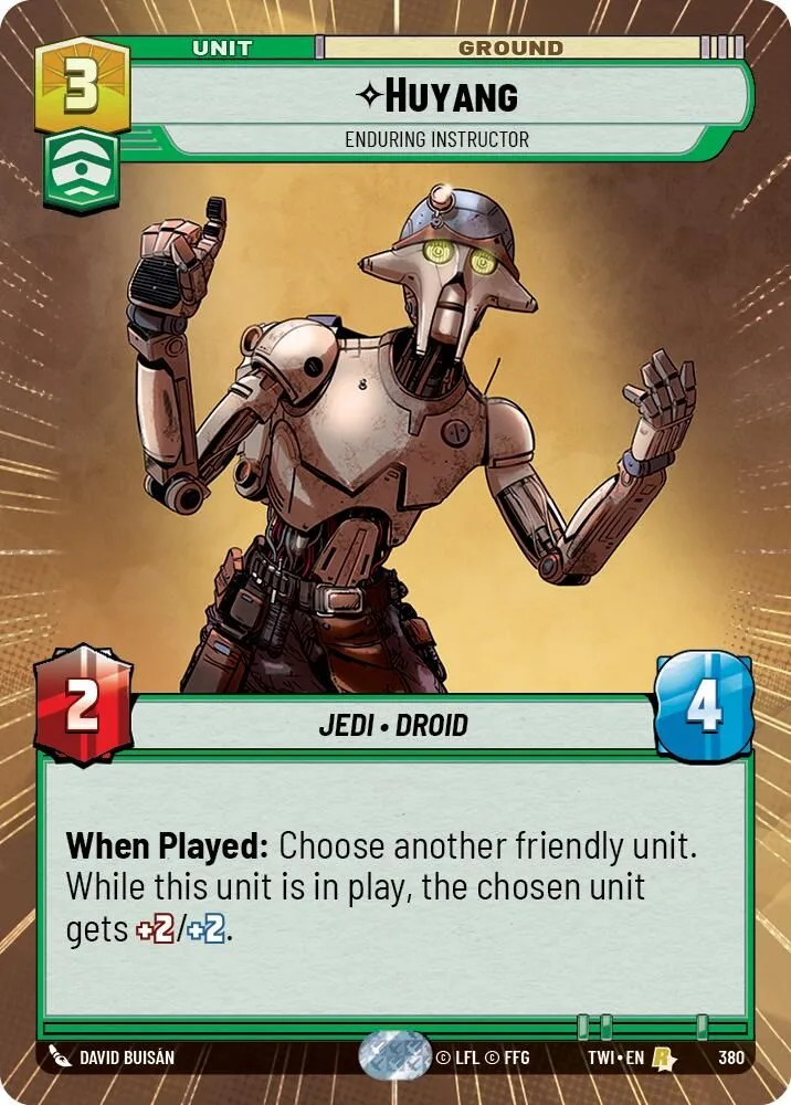 When Played: Choose another friendly unit. While this unit is in play, the chosen unit gets +2/+2.
