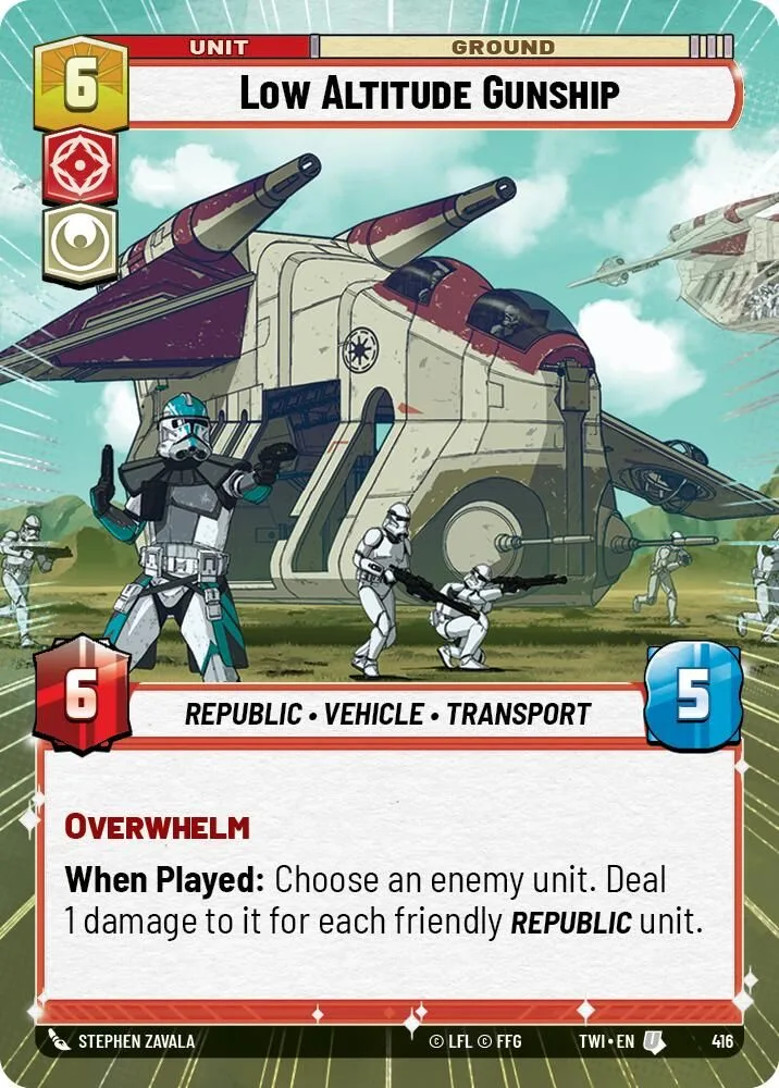 When Played: Choose an enemy unit. Deal 1 damage to it for each friendly Republic unit.